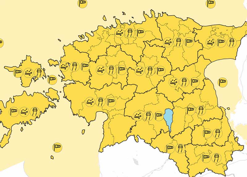 Lõuna- ja edelatuul puhanguti kuni 17, rannikul kuni 21 m/s.